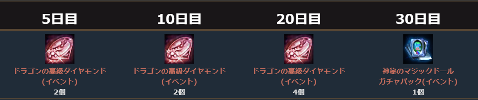 36日目以降は、出席報酬として以下の報酬を受け取ることができます。