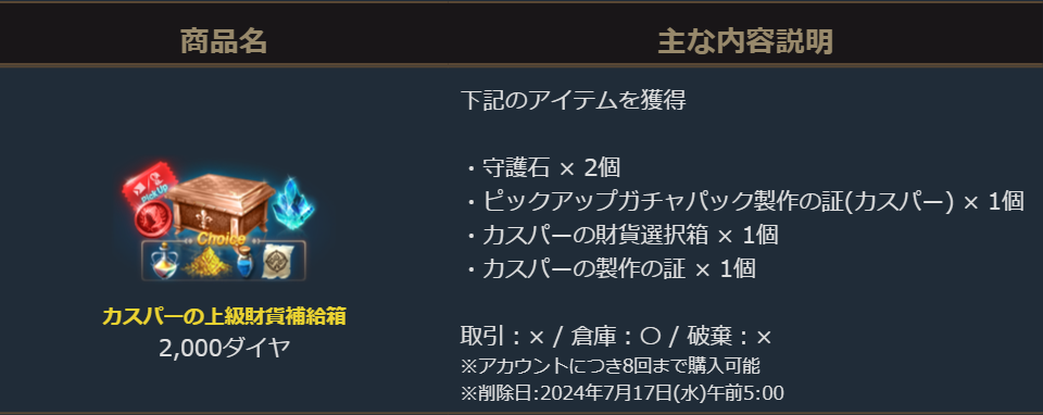 2024年6月26日より販売を開始しました「カスパーの上級財貨補給箱」のご案内を申し上げます。
