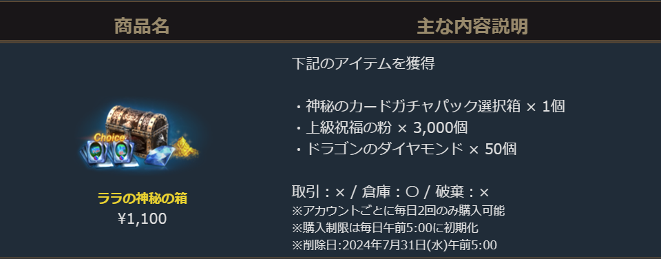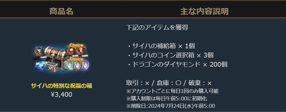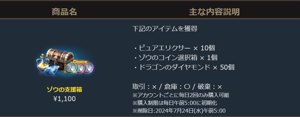 販売期間:2024年7月10日(水)定期メンテナンス後 ~ 2024年7月24日(水)定期メンテナンス前まで