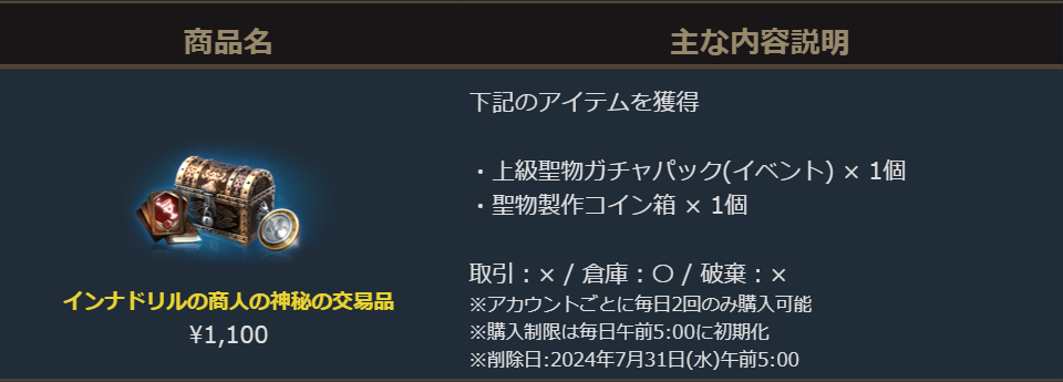 ■「インナドリルの商人の神秘の交易品」の販売を開始しました。