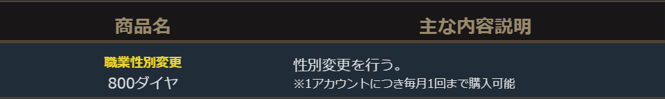 ※ダイヤが不足した状態でも、職業性別変更情報を確認できます。