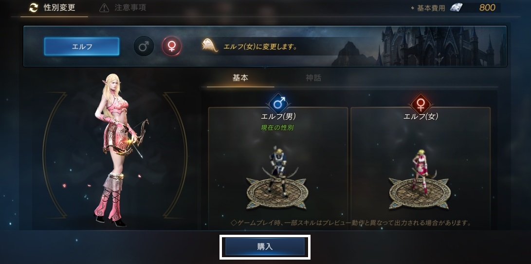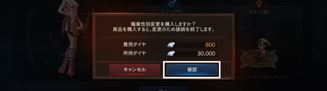 ※購入後、性別変更が申請され、ゲームから切断されます。しばらくお待ち頂いた後、再接続をお試し下さい。