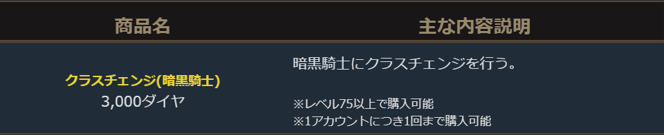 今回のクラスチェンジキャンペーンは「暗黒騎士」へのクラスチェンジが可能になります。