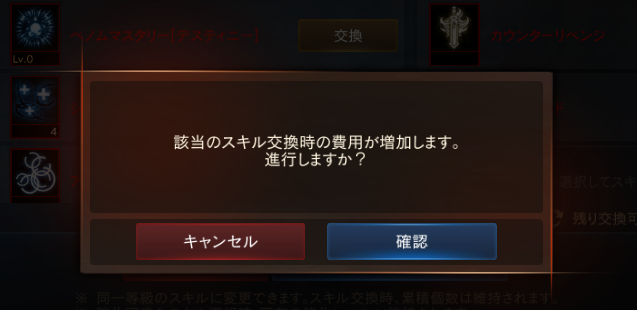 追加で発生する費用を画面上で確認の上スキルを選択して、下部の「交換」を選択してください。