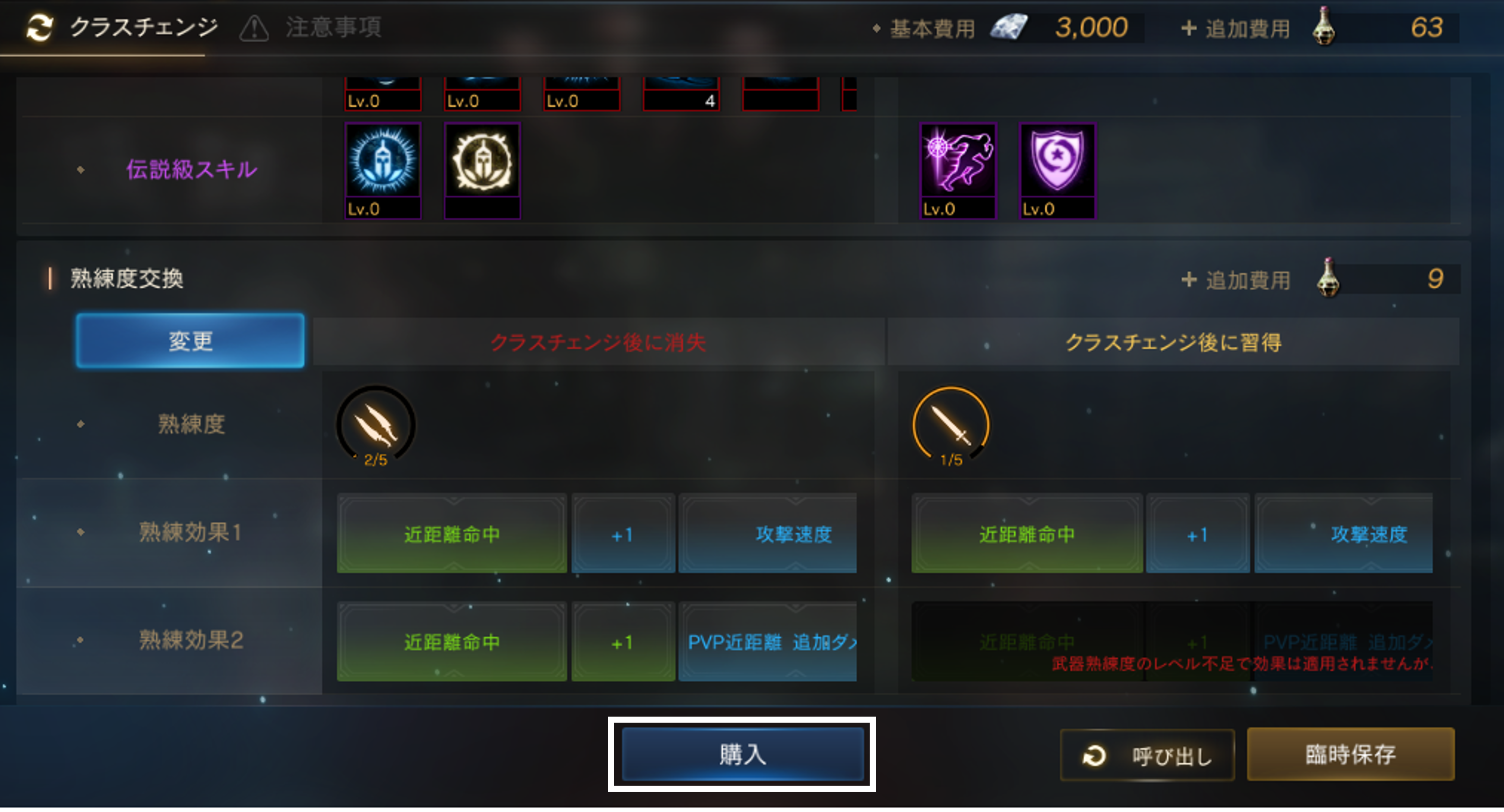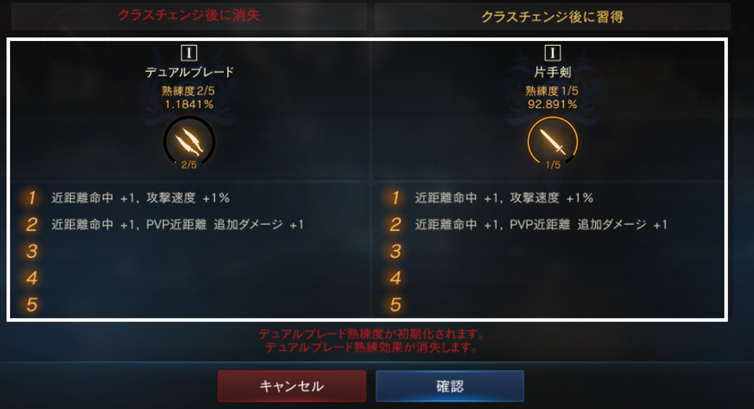 ※【スキルエンチャントで強化済み】のスキルの交換は、クラスチェンジ先の職業の【スキルエンチャントで強化が可能】なスキルに交換した場合のみ強化値が引き継がれます。