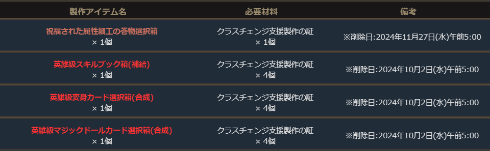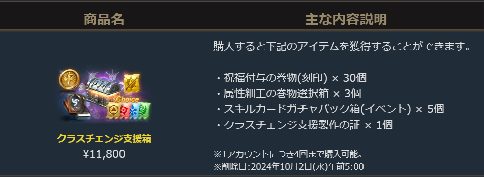 クラスチェンジ後の再度の武器強化に役立つパッケージとなっております。