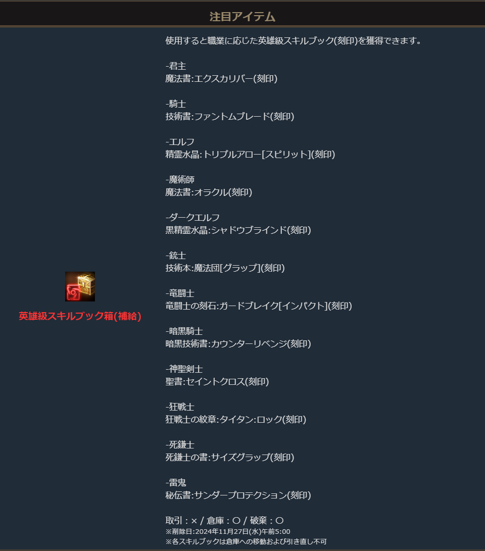※一部アイテムは未使用の場合、一定期間が経過すると自動で削除されます。詳しくは各アイテムの詳細をご確認ください。