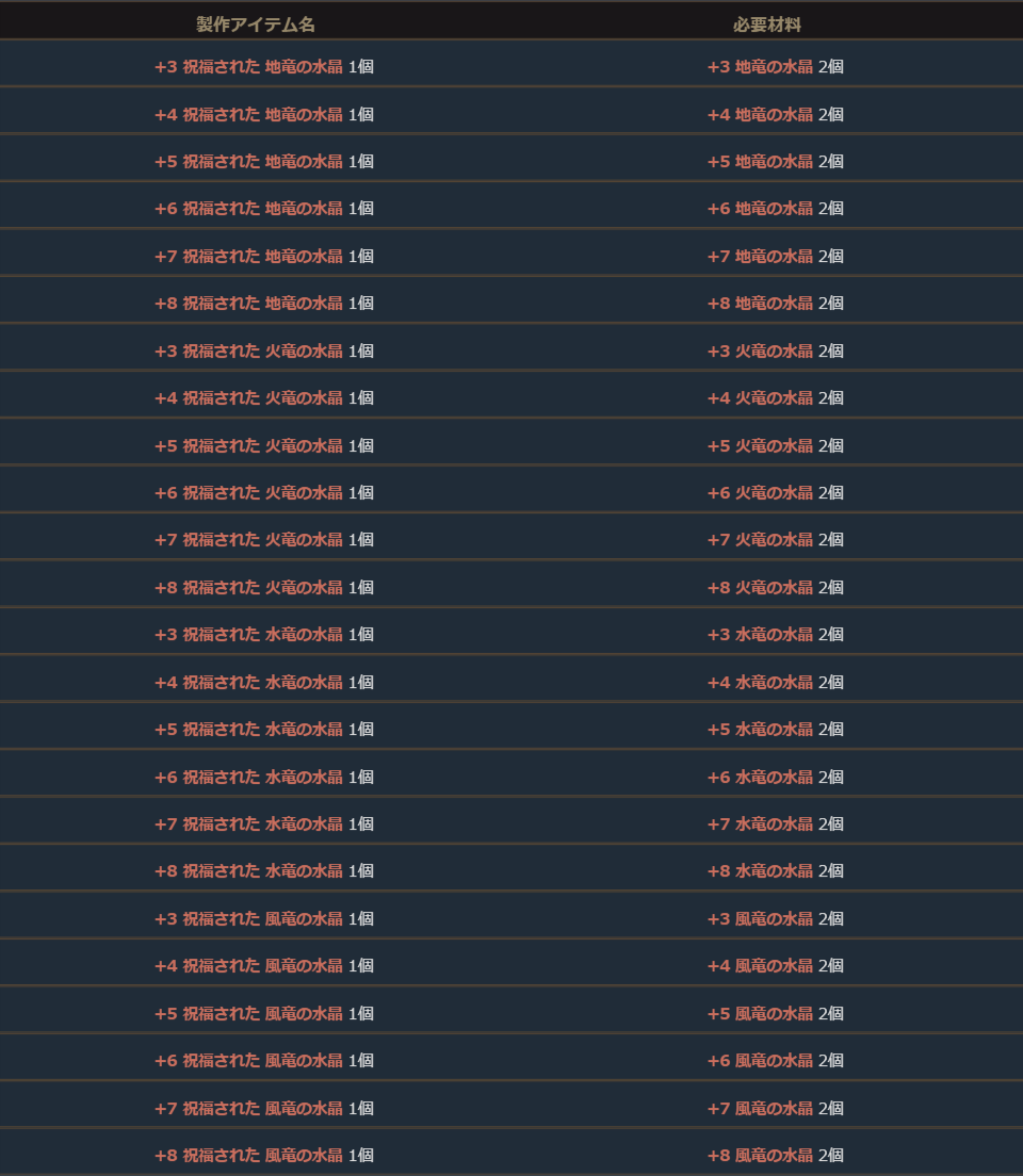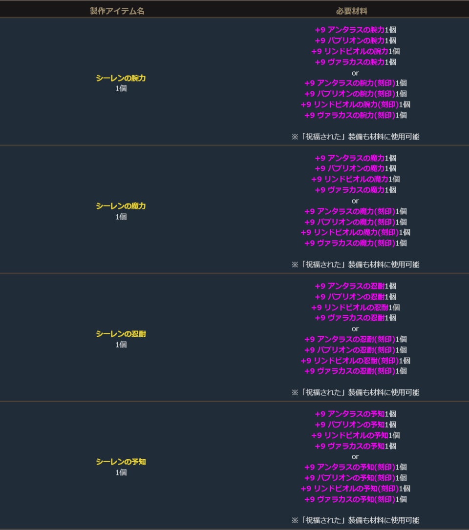 それぞれ+9まで強化した四竜の装備を素材とすることで製作が可能です。