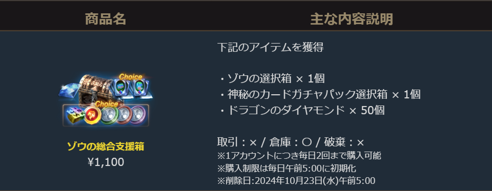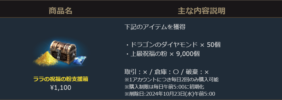 販売期間:2024年10月2日(水)定期メンテナンス後 ~ 2024年10月16日(水)定期メンテナンス前まで