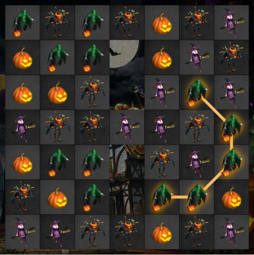 ハロウィンパズルゲームに挑戦し、素早くスコア11270点を目指しましょう。