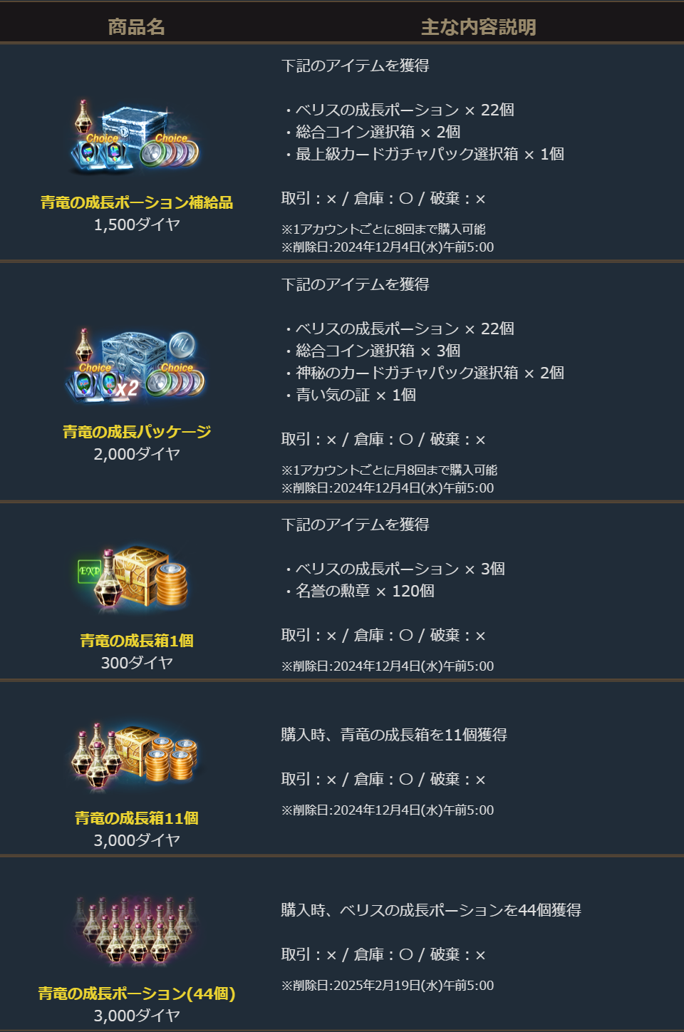 2024年10月23日より、ゲーム内ショップで販売を開始しました「青竜の成長箱」についてご案内します。