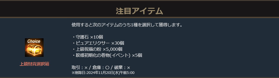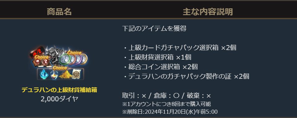 2024年10月30日より販売を開始しました「デュラハンの上級財貨補給箱」のご案内を申し上げます。