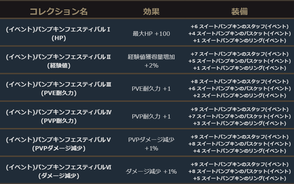ハロウィンイベント商人からは強化することでイベントコレクションに登録することができる各種イベント防具やイベント武器を手に入れる事ができます。
