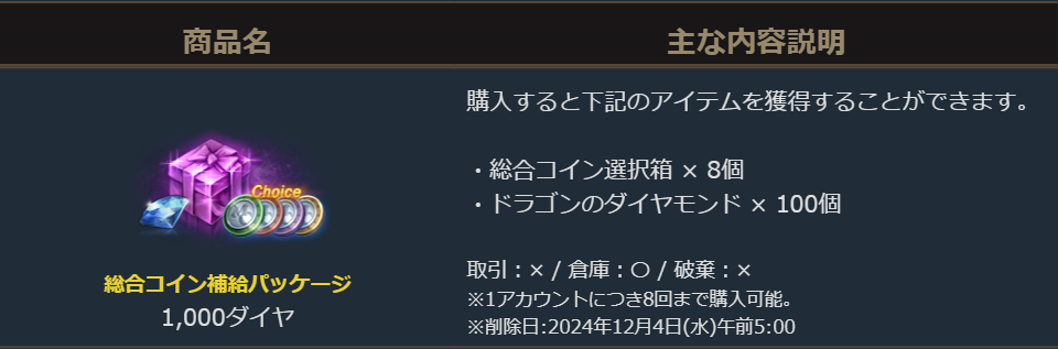 2024年11月23日より販売を開始致します「総合コイン補給パッケージ」のご案内を申し上げます。
