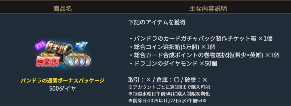 2024年11月27日より販売を開始しました「パンドラの週間ボーナスパッケージ」のご案内を申し上げます。