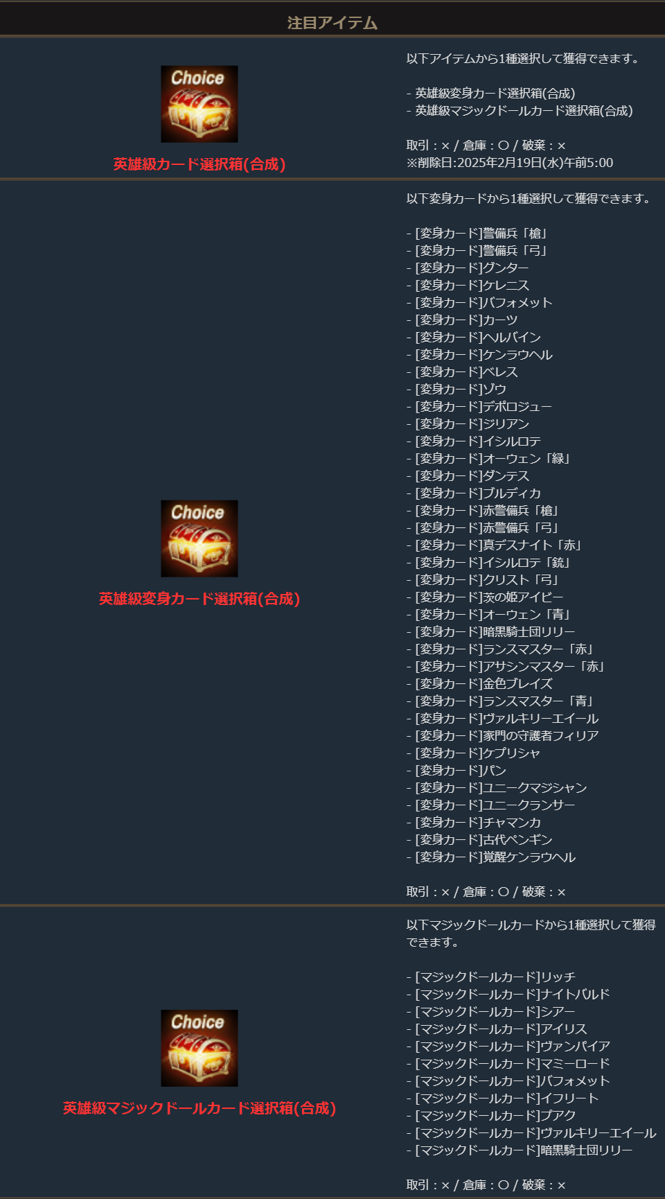※アイテムの詳細説明はゲーム内TIPよりご確認ください。
