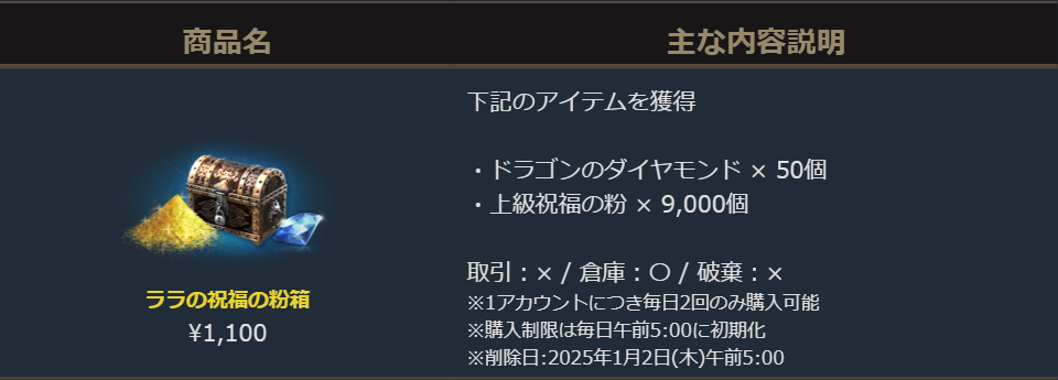 販売期間:2024年12月11日(水)定期メンテナンス後 ~ 2024年12月26日(木)定期メンテナンス前まで