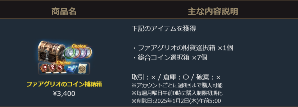 ■「ファアグリオのコイン補給箱」の販売を開始しました。
