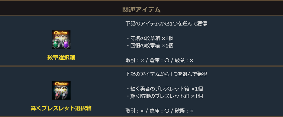 「ナルエンの紋章箱」は「紋章選択箱」72個と「神秘のカードガチャパック選択箱」3個がセットになった紋章強化にお勧めのパッケージです。