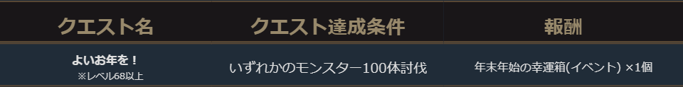 イベント期間限定のデイリークエストをそれぞれ達成する事によって、「年末年始の幸運箱(イベント)」を獲得できます。