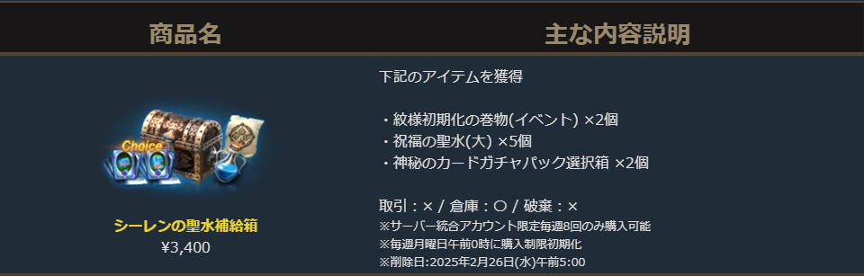 2025年2月5日より販売を開始しました「シーレンの聖水補給箱」のご案内を申し上げます。