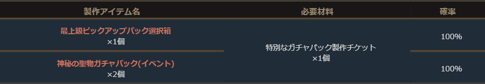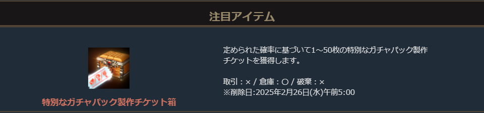 さらに付属の「特別なガチャパック製作チケット箱」では最大で50個の「特別なガチャパック製作チケット」を獲得することができます。