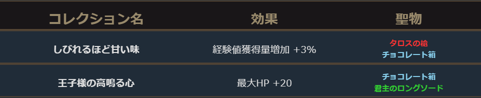 新規聖物の追加に伴い、コレクションも新規に追加されました。