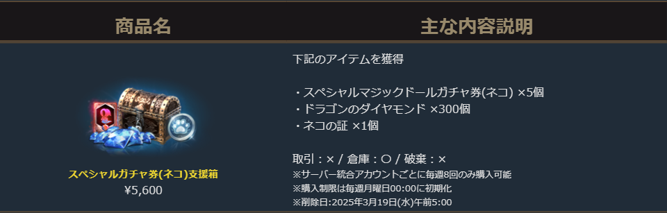 2025年2月19日より販売を開始しました「スペシャルガチャ券(ネコ)支援箱」のご案内を申し上げます。