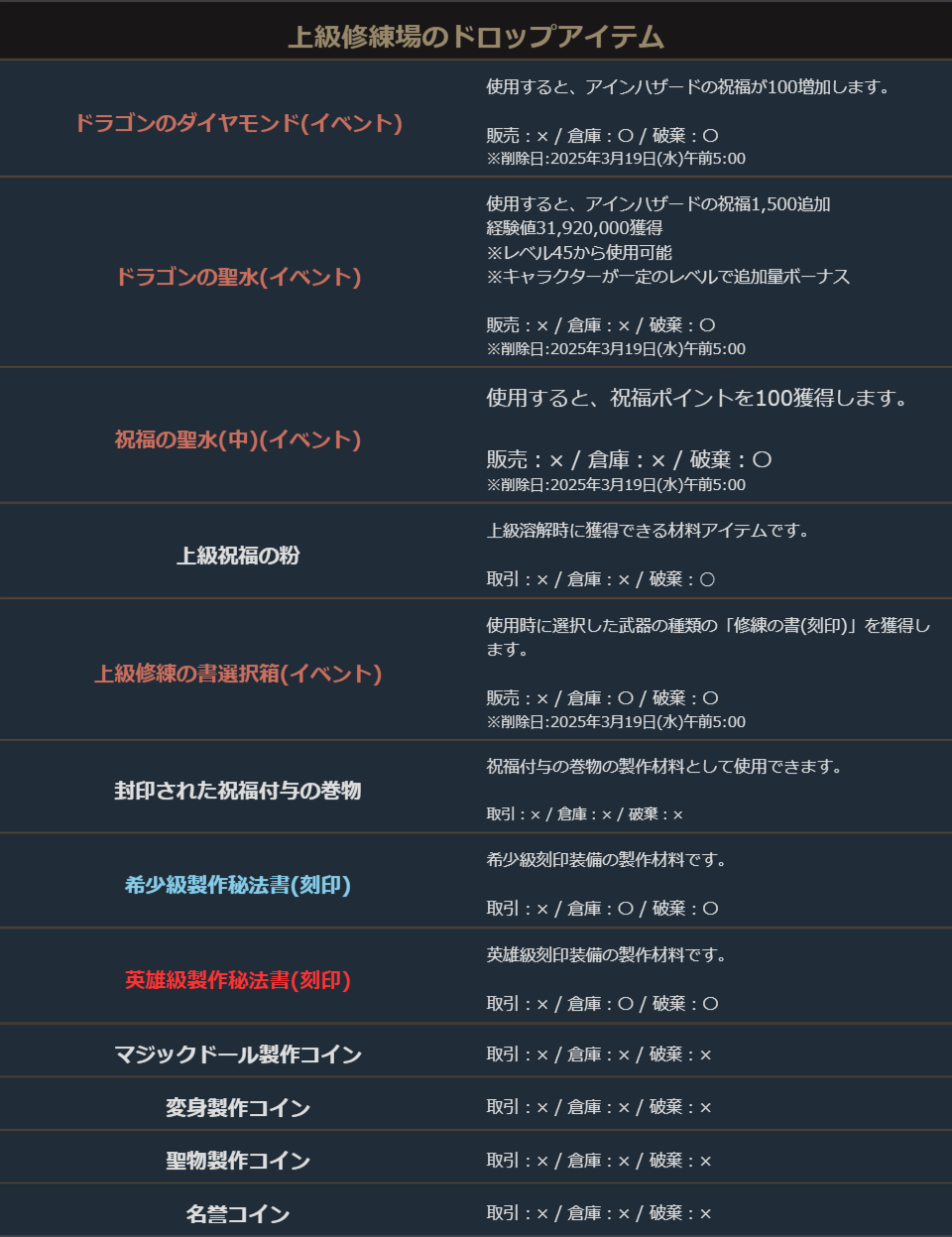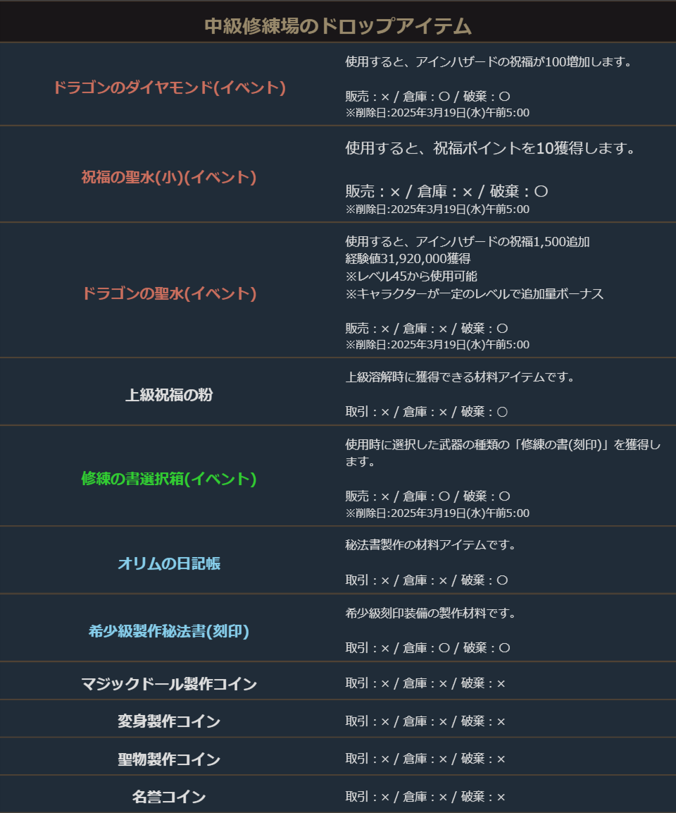 中級修練場でもアインハザードの祝福チャージアイテムもドロップするので、期間中は毎日通いましょう!