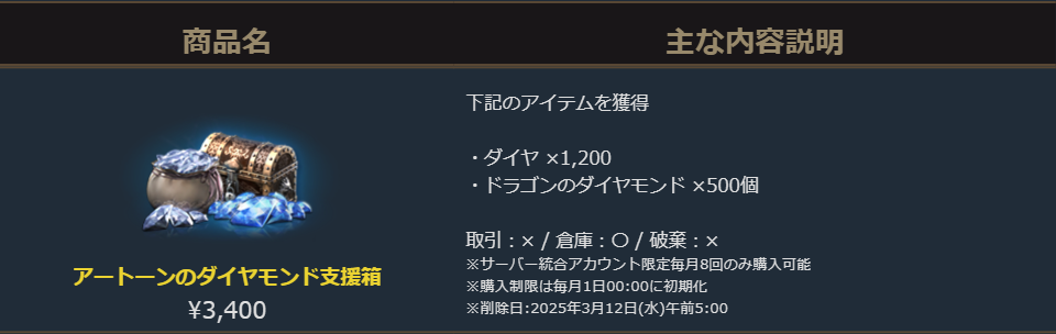 販売期間:2025年2月26日(水)定期メンテナンス後 ~ 2025年3月5日(水)定期メンテナンス前まで