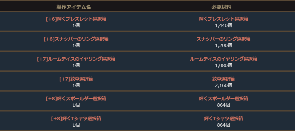 製作アイテムにて記載している製作の材料につきまして、3月5日(水)定期メンテナンス時より前に購入したアイテムは製作材料として使用することはできません。