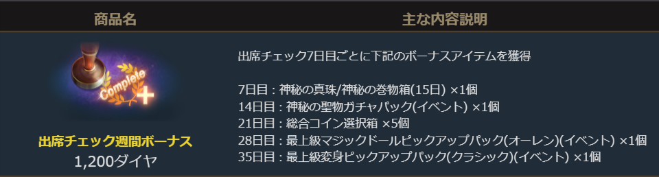 毎日受け取ることができる「出席報酬」の内容を更新いたしました。