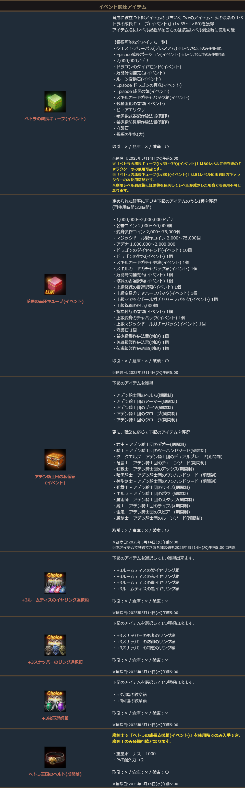 ペトラの成長キューブ(イベント)の使用レベル制限について追記しました。