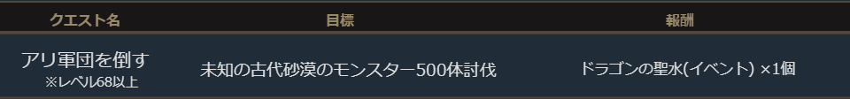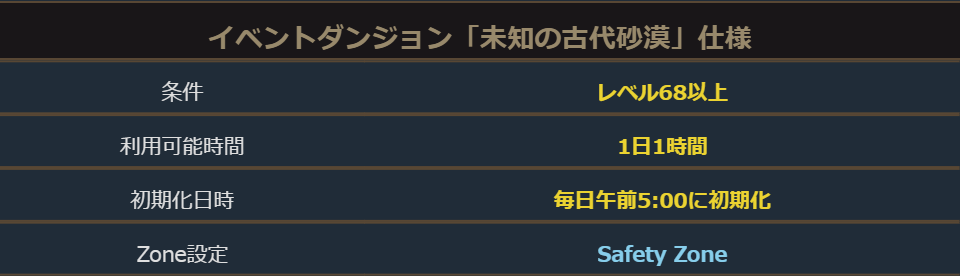 「未知の古代砂漠」はレベル68以上のキャラクターが入場できるダンジョンになっています。