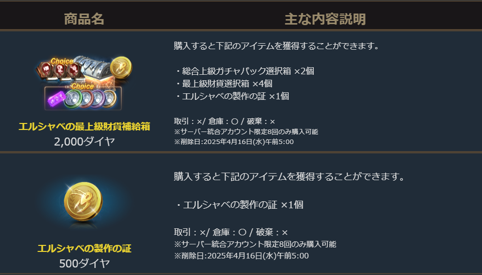 2025年3月26日より販売を開始しました「エルシャベの最上級財貨補給箱」のご案内を申し上げます。