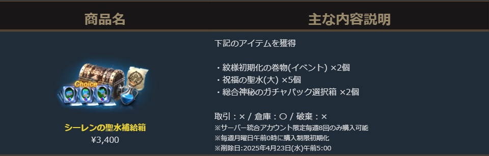 2025年4月2日より販売を開始しました「シーレンの聖水補給箱」のご案内を申し上げます。