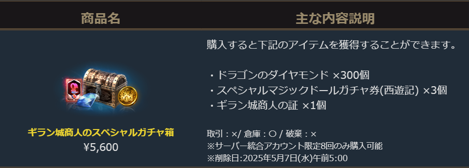 2025年4月16日より販売を開始しました「ギラン城商人のスペシャルガチャ箱」のご案内を申し上げます。