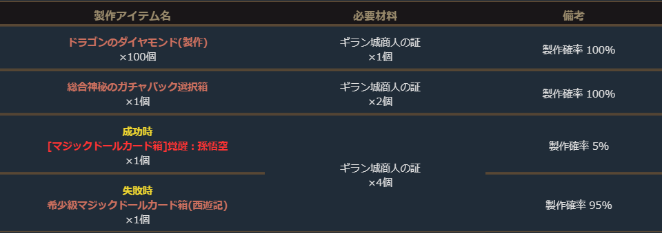 さらに、付属の「ギラン城商人の証」を素材に新規マジックドールカード「覚醒:孫悟空」等の製作にチャレンジが可能です。