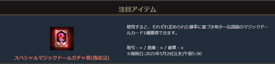「ドラゴンのダイヤモンド」300個と「スペシャルマジックドールガチャ券(西遊記)」3個が獲得できます。