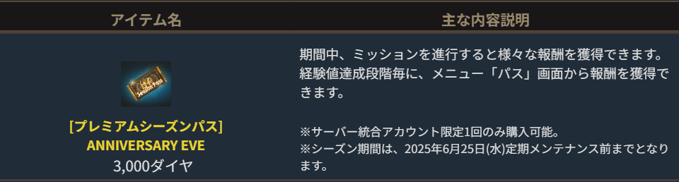 ・[プレミアムシーズンパス]ANNIVERSARY EVE販売期間
