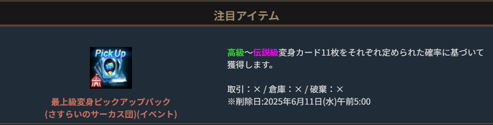 ※一部アイテムは未使用の場合、一定期間が経過すると自動で削除されます。詳しくは各アイテムの詳細をご確認ください。