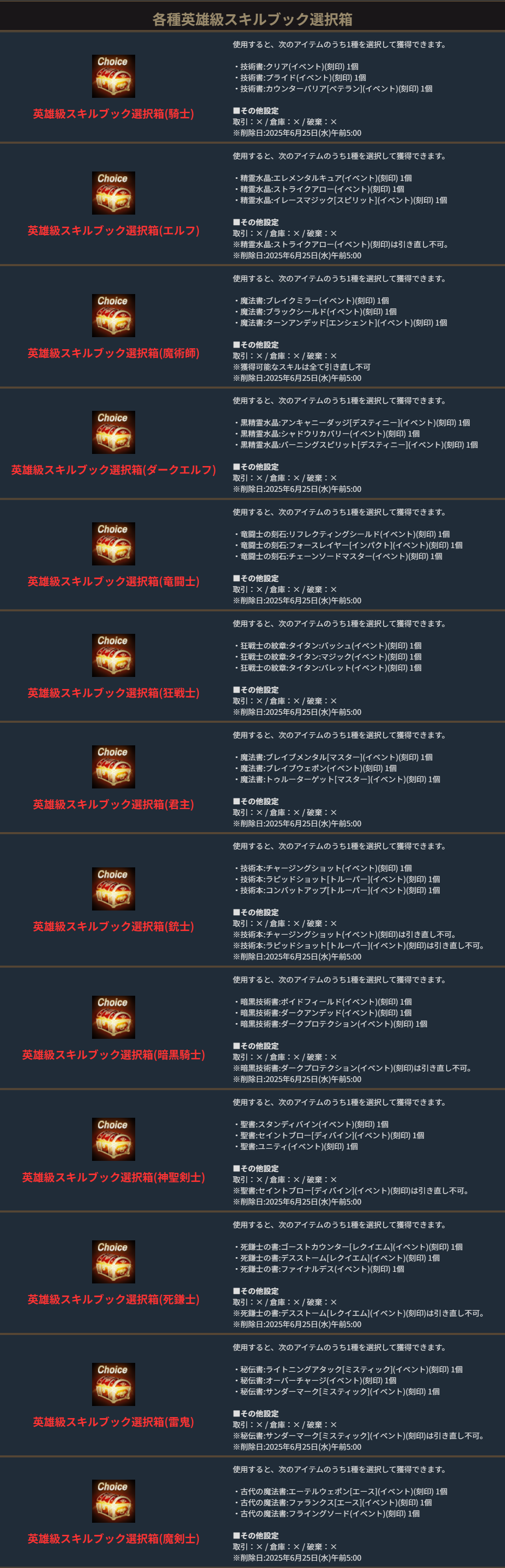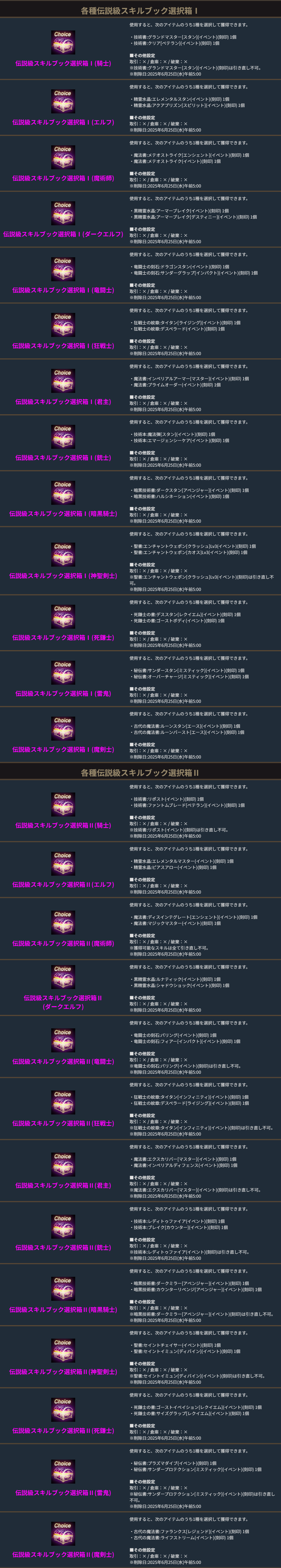 「伝説級スキルブック箱Ⅰ(イベント)(刻印)」を交換すると異なる伝説級スキルブックを獲得出来る「伝説級スキルブック箱(イベント)(刻印)Ⅱ」が交換可能です。