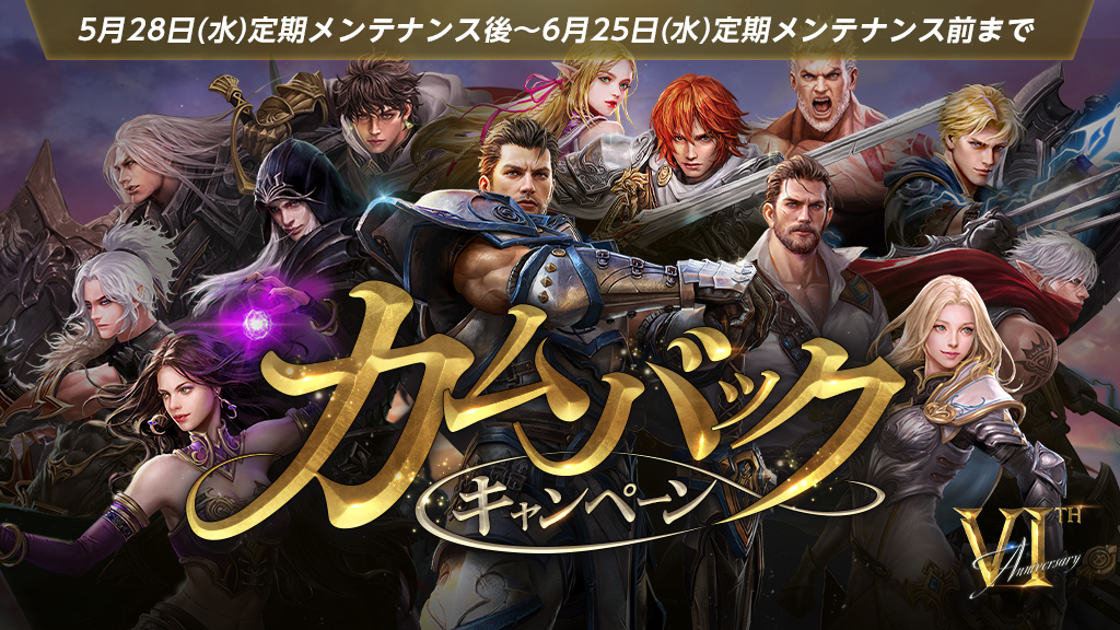 2025年5月28日(水)定期メンテナンス後から開始致しました6周年記念「カムバックキャンペーン」についてご案内致します。