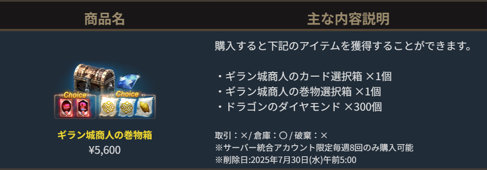 ■「ギラン城商人の巻物箱」の販売を開始しました。