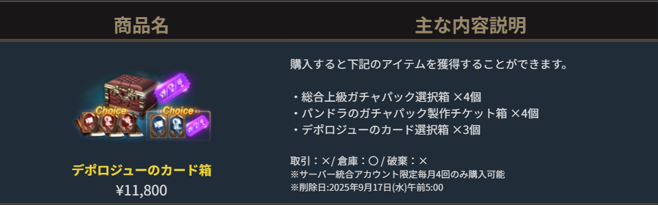 販売期間:2025年7月9日(水)定期メンテナンス後~2025年9月10日(水)定期メンテナンス前まで