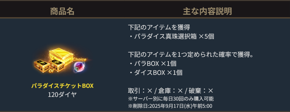 2025年7月16日より販売を開始しました「パラダイスチケットBOX」のご案内を申し上げます。