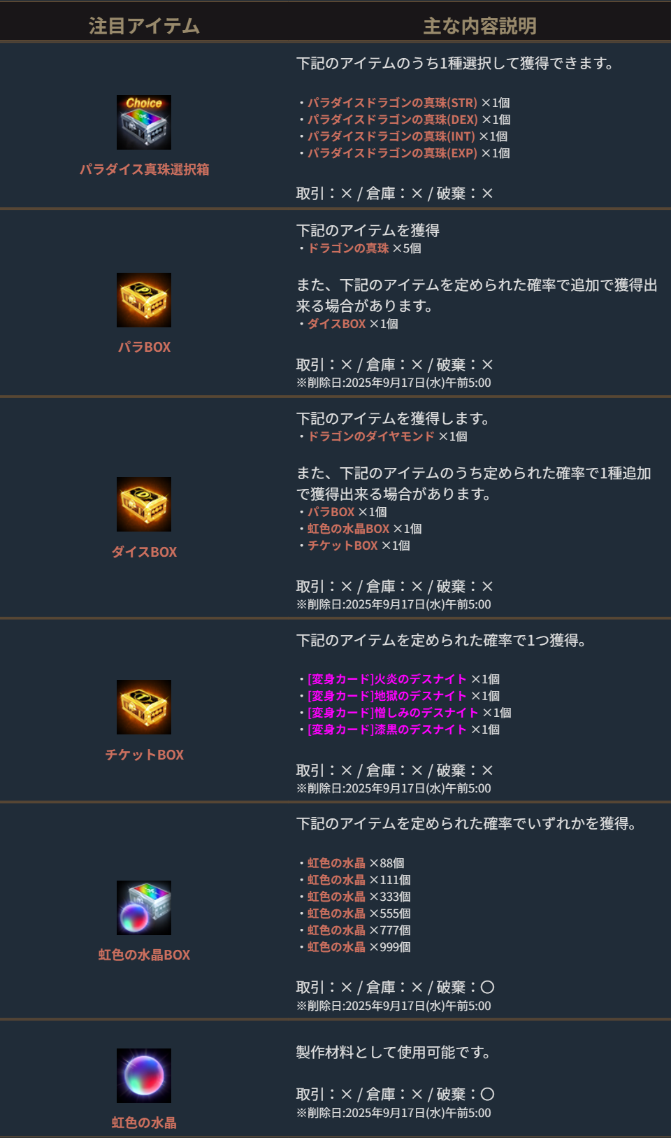 ※アイテムの詳細説明はゲーム内TIPよりご確認ください。