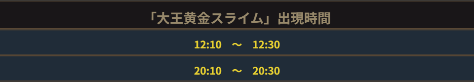 以下の時間になると「大王黄金スライム」が出現します。