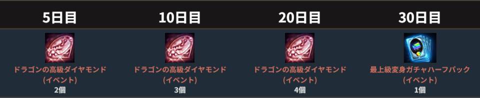 36日目以降は、出席報酬として以下の報酬を受け取ることができます。