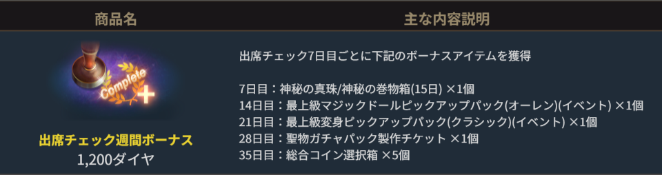 毎日受け取ることができる「出席報酬」の内容を更新いたしました。